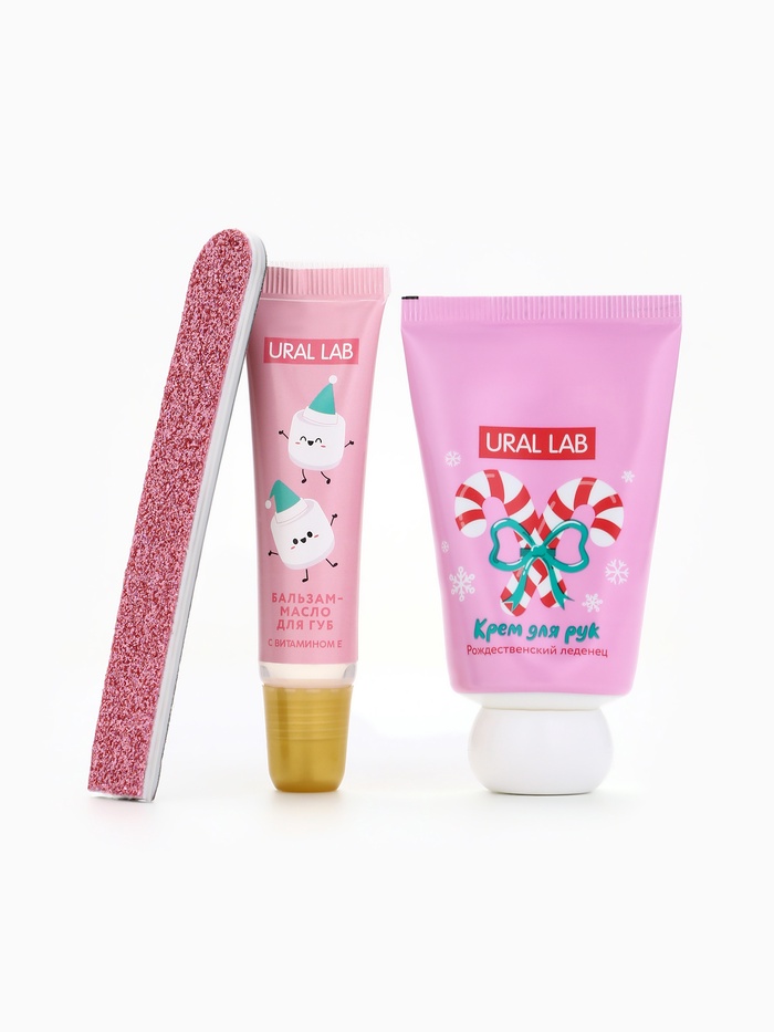 Подарочный набор новогодний: крем для рук, масло для губ и пилочка для ногтей, URAL LAB