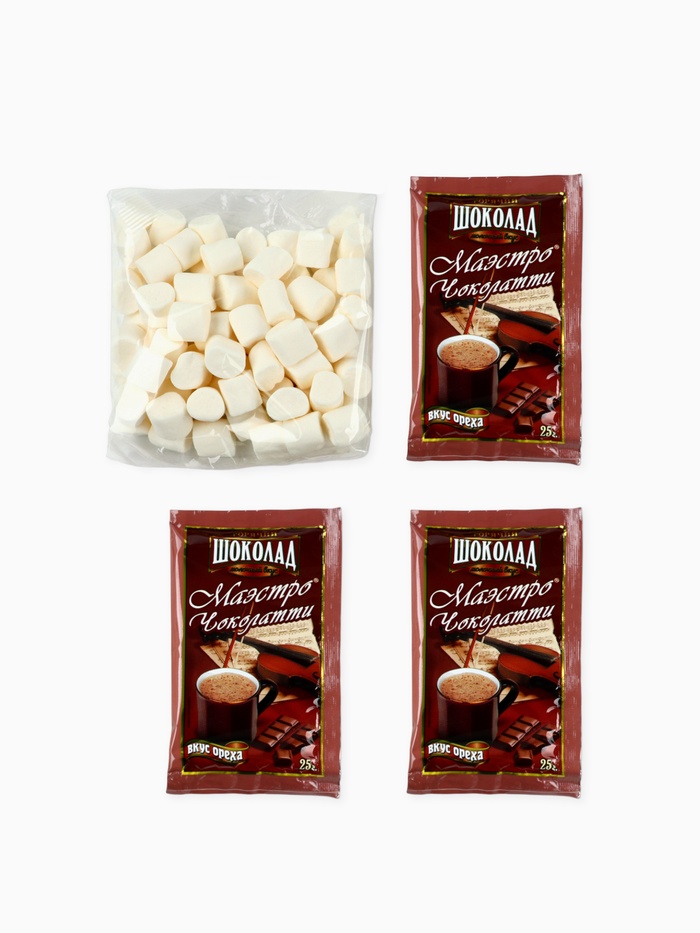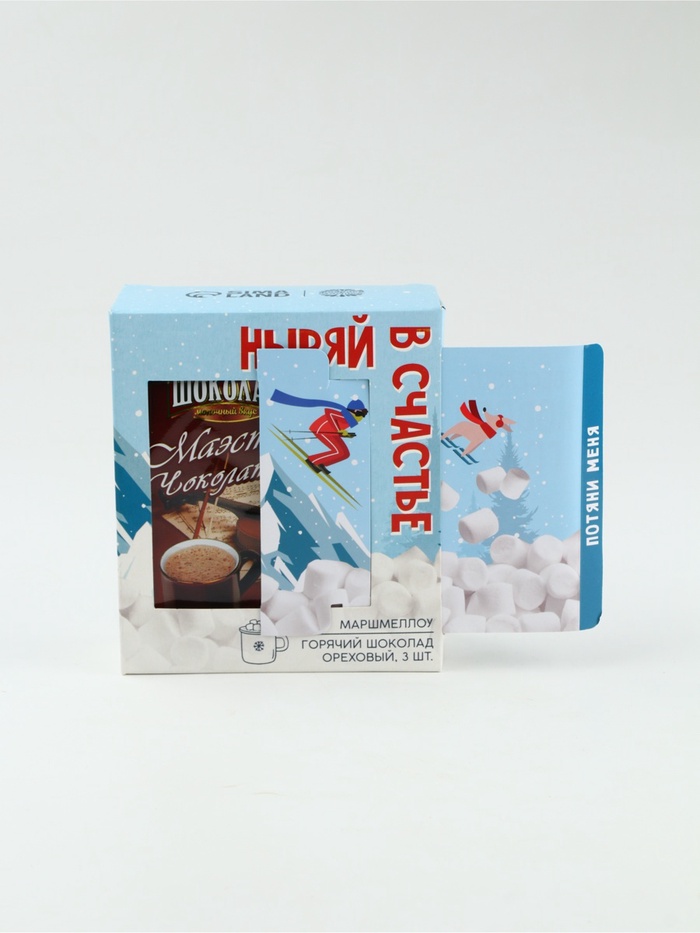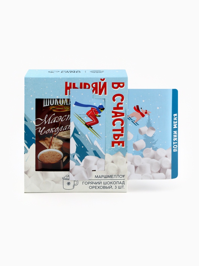 Подарочный набор новогодний «Ныряй в счастье»: маршмеллоу, вкус: пломбир, 50 г., горячий шоколад, вкус: орех, 75 г (25 г. х 3 шт).