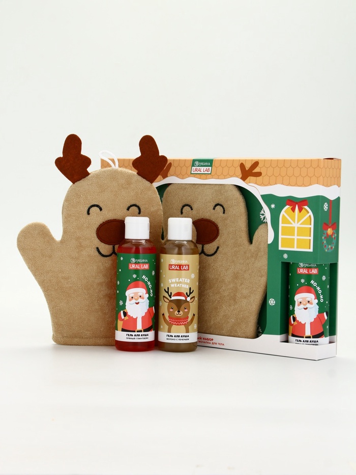 Подарочный набор новогодний «Олень», гель для душа 2 шт х150 мл, мочалка, URAL LAB