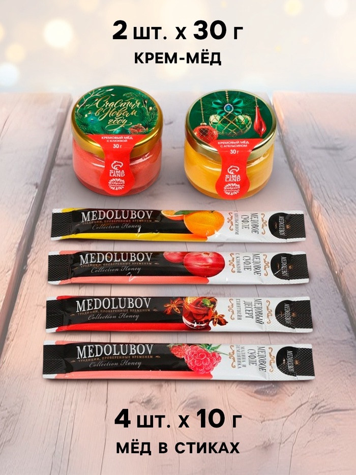 Подарочный набор новогодний «С новым годом»: крем-мёд 2 шт., мёд в стиках 4 шт.