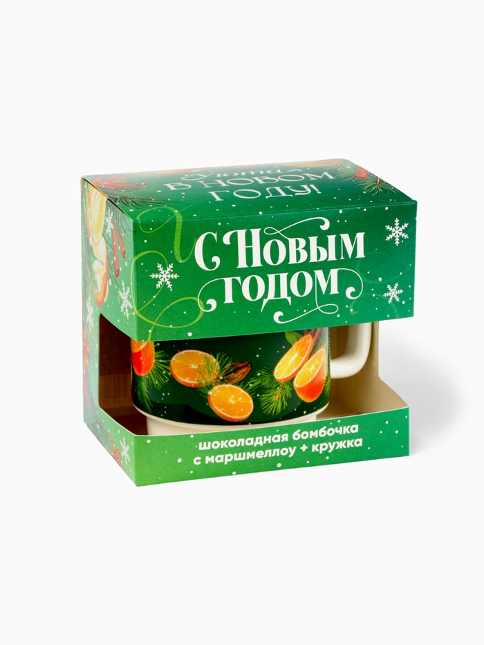Подарочный набор новогодний «С новым годом»: кружка 350 мл., шоколадная бомбочка с маршмеллоу 35 г