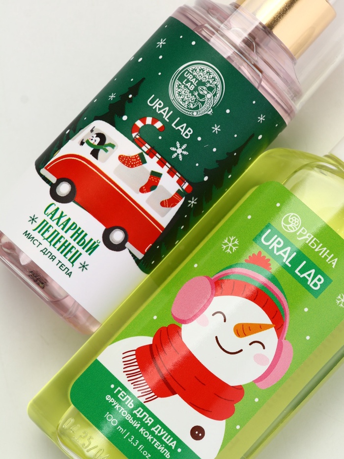 Подарочный набор новогодний «Снеговичок», гель для душа 100 мл и мист для тела, URAL LAB