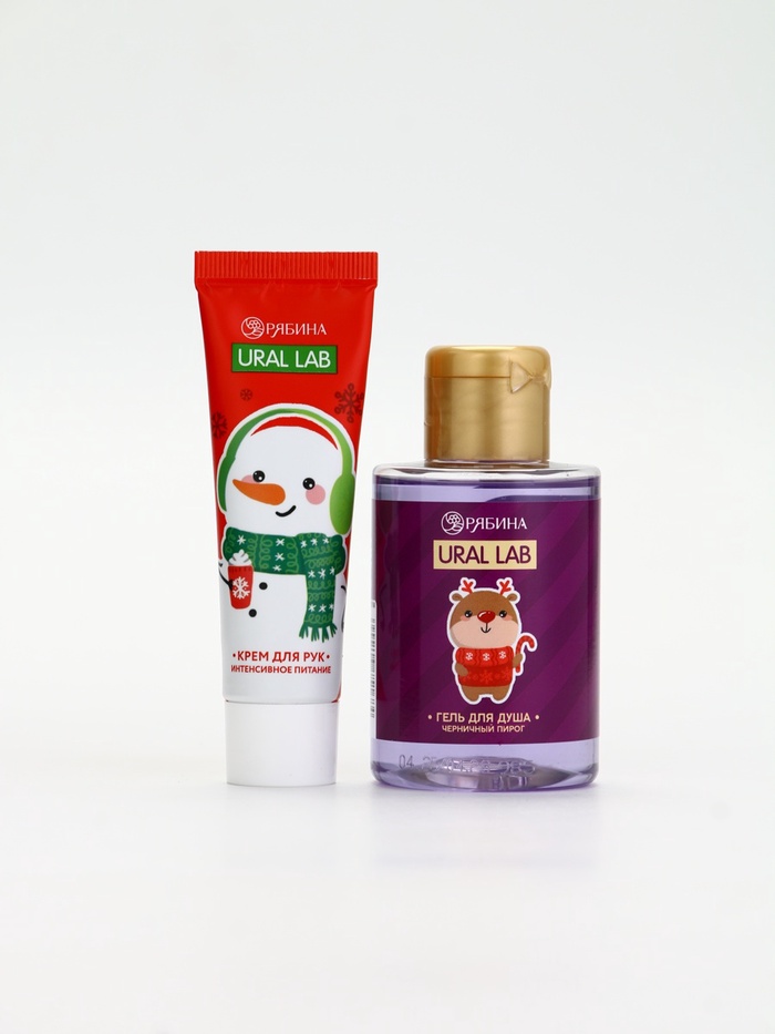 Подарочный набор новогодний «Снеговик», гель для душа, кружка, мочалка и крем для рук, URAL LAB