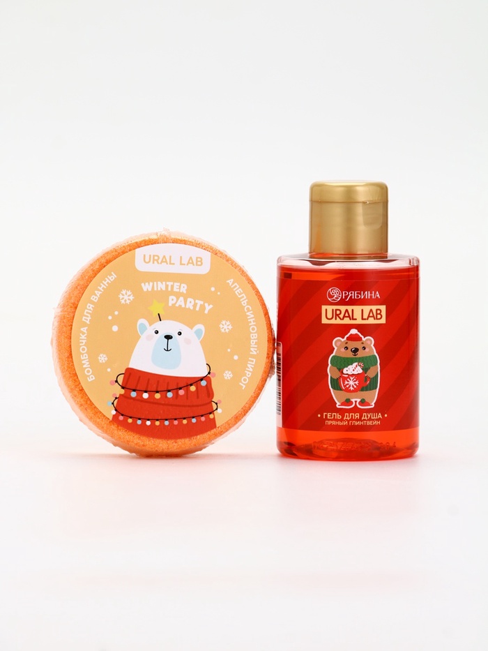 Подарочный набор новогодний в тубусе «Снеговичок», бомбочка, гель, мочалка, URAL LAB