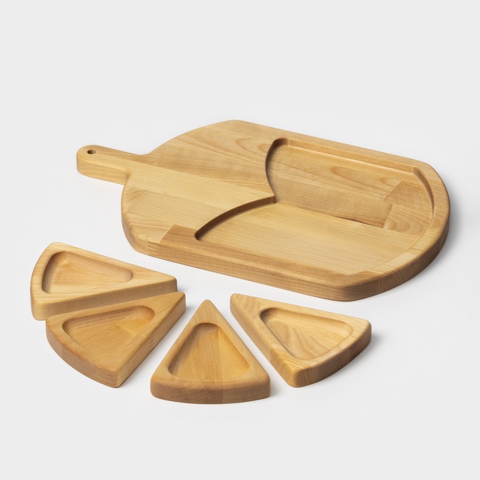 Подарочный набор посуды Adelica «Сырная мозаика», доска разделочная 35×22 см, менажницы 4 шт., 12.5×9 см, дерево берёза