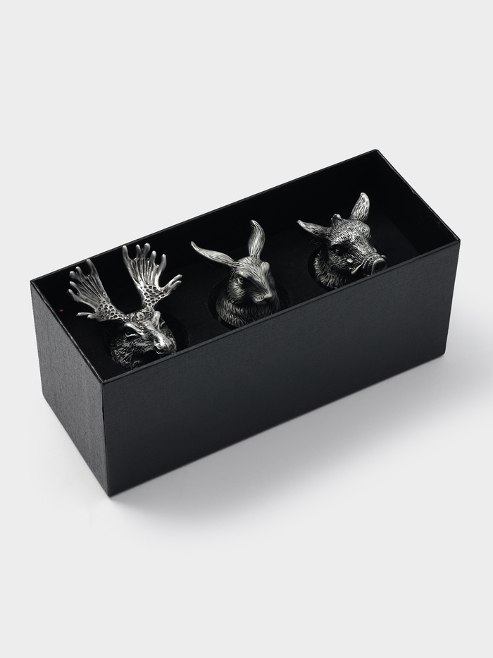 Набор стопок-перевертышей высокого качества с головами животных — оригинальный подарок для охотника, а также будет незаменим на большом дружеском застолье или на охотничьем привале.