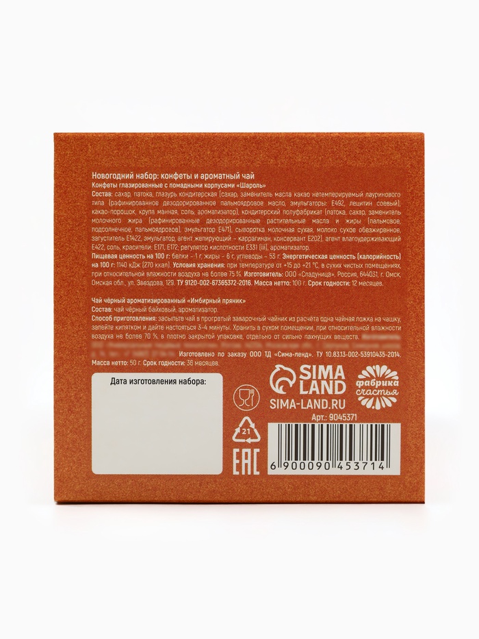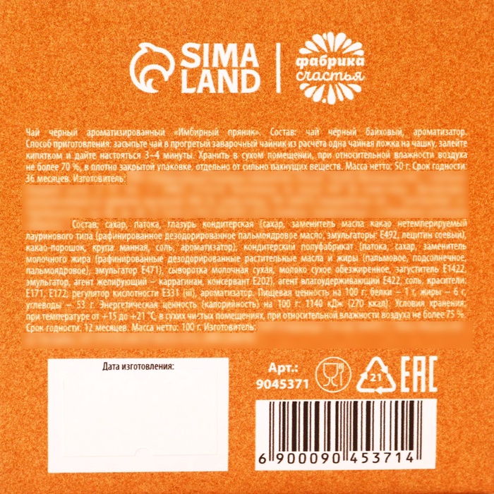 Состав: сахар, заменитель масла какао (масло пальмоядровое рафинированное, дезодорированное, фракционированное, гидрогенизированное), сыворотка молочная сухая, какао-порошок, эмульгаторы (лецитин Е322, Е476), начинка: сахар, жир специального назначения (масла растительные рафинированные, дезодорированные, модифицированные), сыворотка молочная сухая, мальтодекстрин, порошок манго сублимированный, ароматизатор натуральный «Манго», краситель пищевой – куркумин.