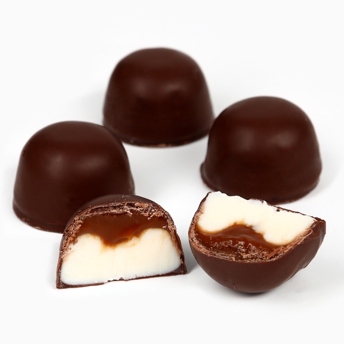 Состав: сахар, заменитель масла какао (масло пальмоядровое рафинированное, дезодорированное, фракционированное, гидрогенизированное), сыворотка молочная сухая, какао-порошок, эмульгаторы (лецитин Е322, Е476), начинка: сахар, жир специального назначения (масла растительные рафинированные, дезодорированные, модифицированные), сыворотка молочная сухая, мальтодекстрин, порошок манго сублимированный, ароматизатор натуральный «Манго», краситель пищевой – куркумин.