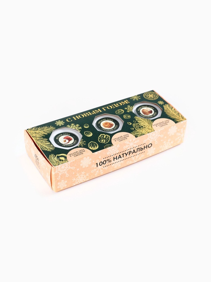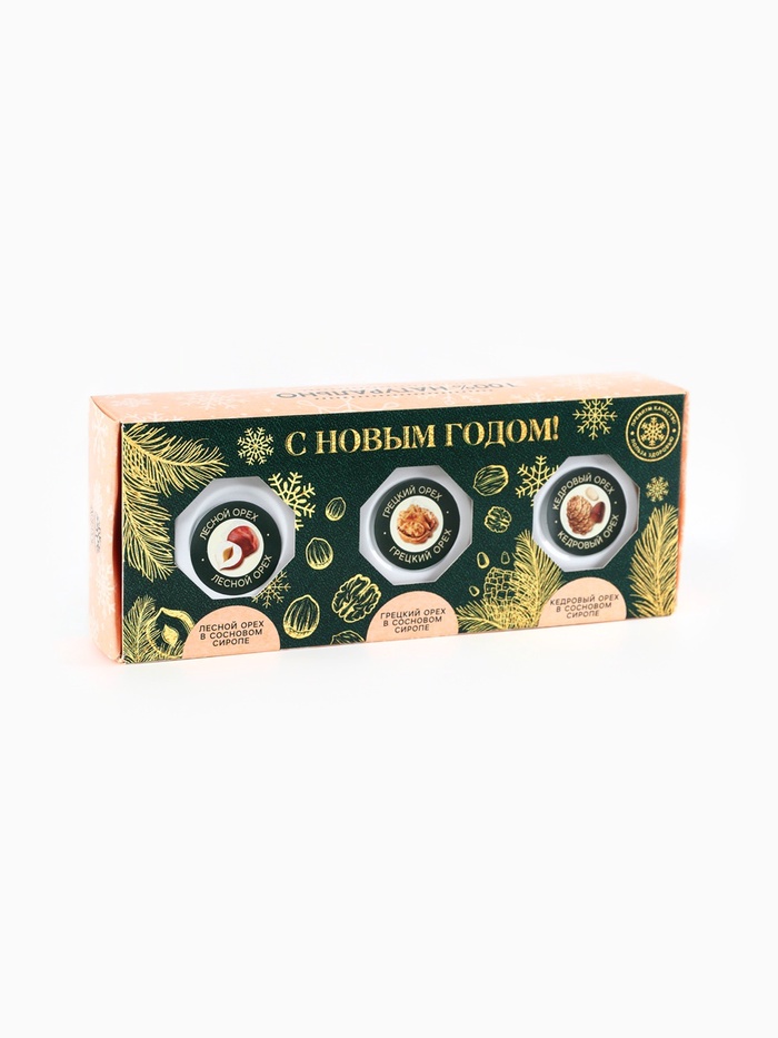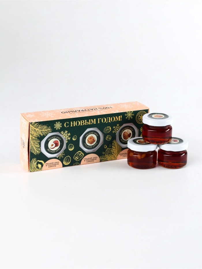 Состав: сахар, ядро кедрового ореха, вода, отвар сосновой шишки, концентрированный лимонный сок. Лесной орех в сосновом сиропе