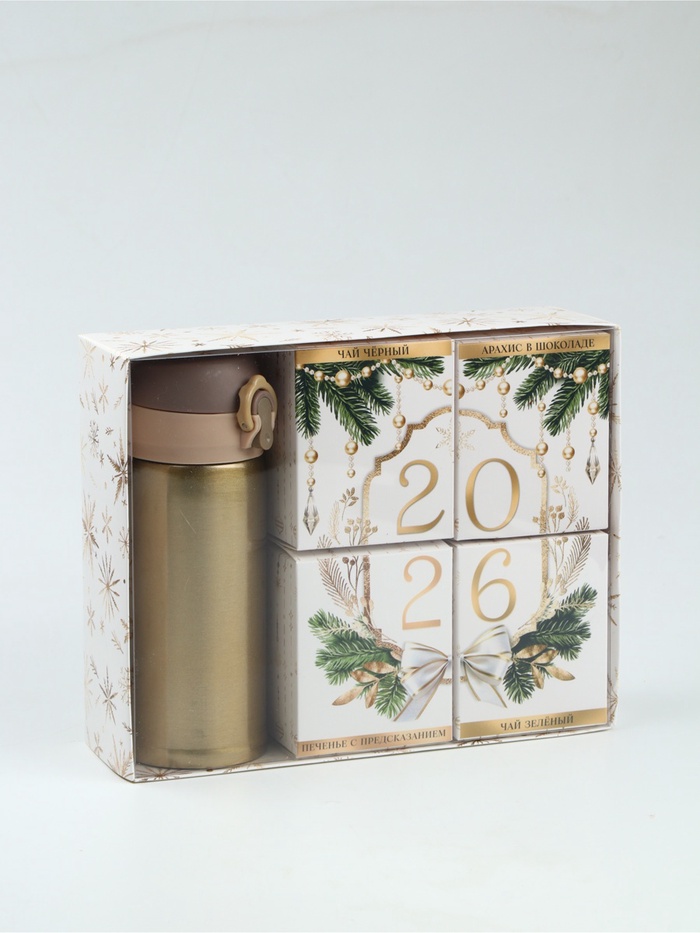 Подарочный набор «Символ года»: термос, чай чёрный/зелёный, печенье с предсказанием, арахис в шоколадной глазури