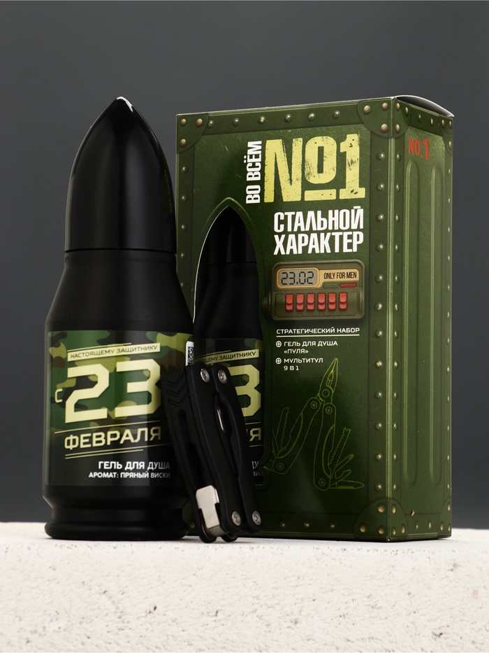Подарочный набор «Защитнику отечества», гель для душа 200 мл во флаконе пуля и мультитул, Чистое счастье