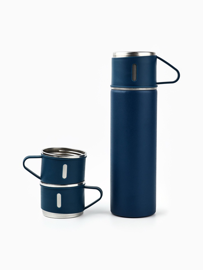 Подарочный набор туристический — идеальный выбор для любителей активного отдыха и приключений. В нём вы найдёте всё необходимое для комфортного путешествия: 3 кружки по 200 мл и термос на 500 мл.