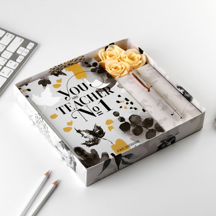 Подарочный набор «Учителю: YOU are the BEST TEACHER»: ежедневник А5 80 листов, ручка шариковая металл 0,8 мм, мыльные лепестки 3 шт.