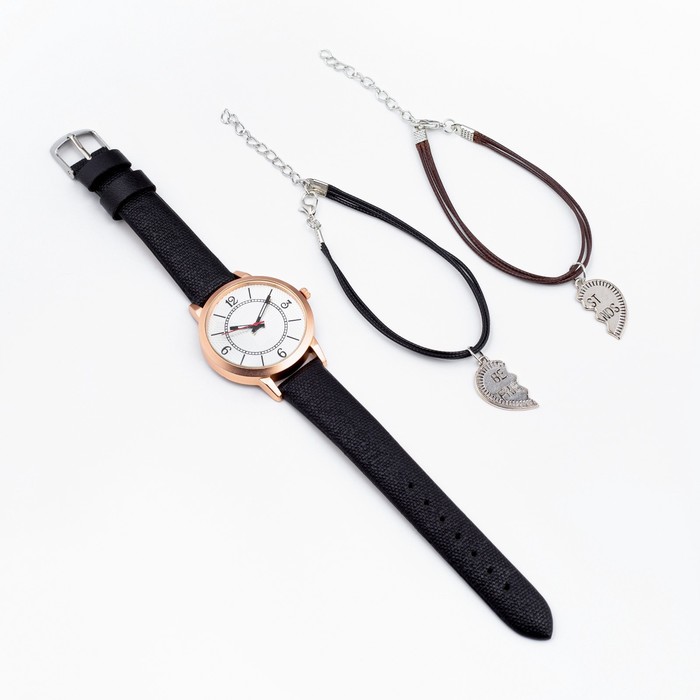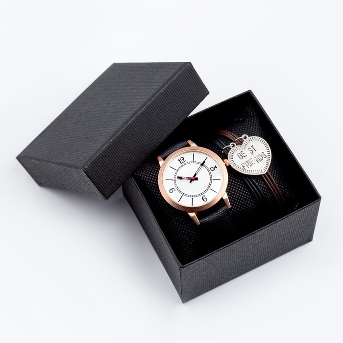 Подарочный набор "Best friends" состоит из наручных часов с диаметром циферблата 4 см и браслета символа дружбы. Станет прекрасным подарком на день рождения, 8 марта, 14 февраля и любой другой повод.