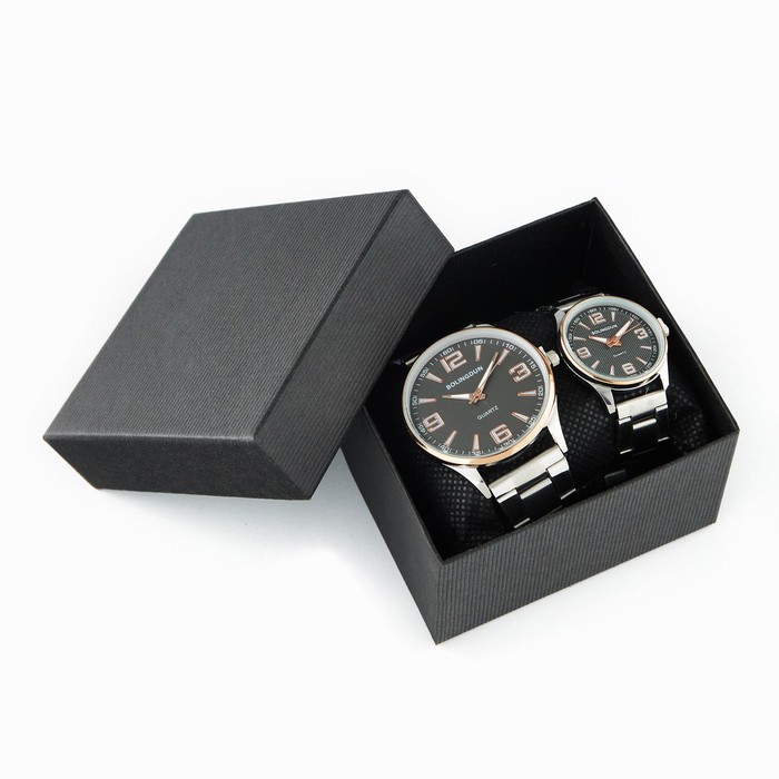 Парный набор для нее и него - прекрасное решение для подарка на важную дату. Часы выполнены в едином стиле и упакованы в прочную упаковку. Отличный подарок на Новый год, корпоратив, день рождения, на 8 марта, 14 февраля, 23 февраля.