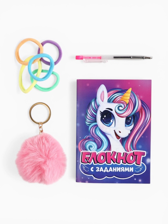 Подарочный набор, в сумке: блокнот, резиночки, брелок, ручка «Единорог»
