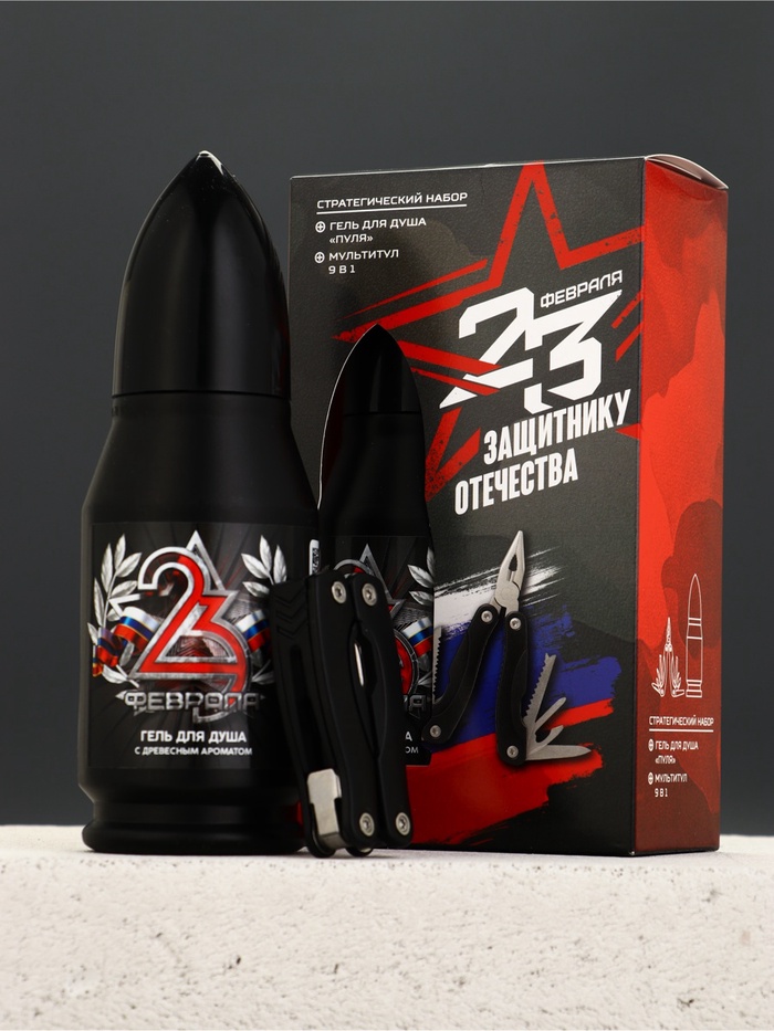 Подарочный набор «Защитнику отечества», гель для душа 200 мл во флаконе пуля и мультитул, Чистое счастье