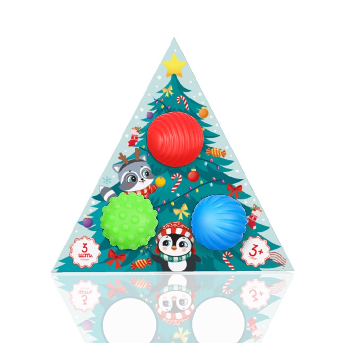 Подарочный новогодний набор развивающих тактильных мячиков Крошка Я «Чудеса рядом», 3 шт.