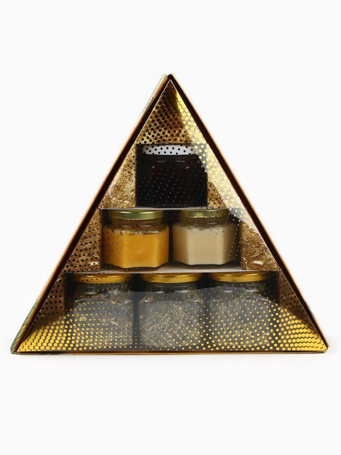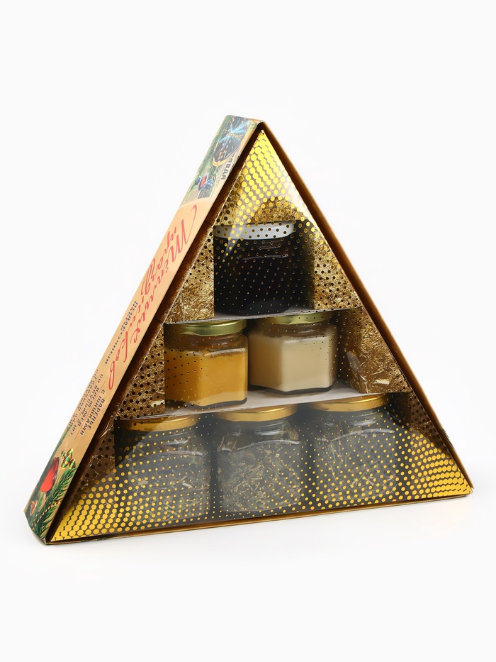 Подарочный новогодний набор «Советский»: чай травяной 25 г х 3 шт., варенье с шишками 100 мл., крем-мёд 120 г х 2 шт.