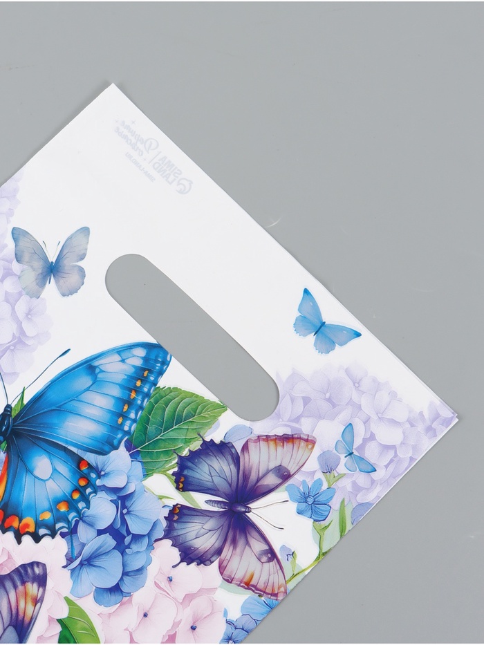 Подарочный пакет, полиэтиленовый, с вырубной ручкой, «Бабочки», 20 х 30 см