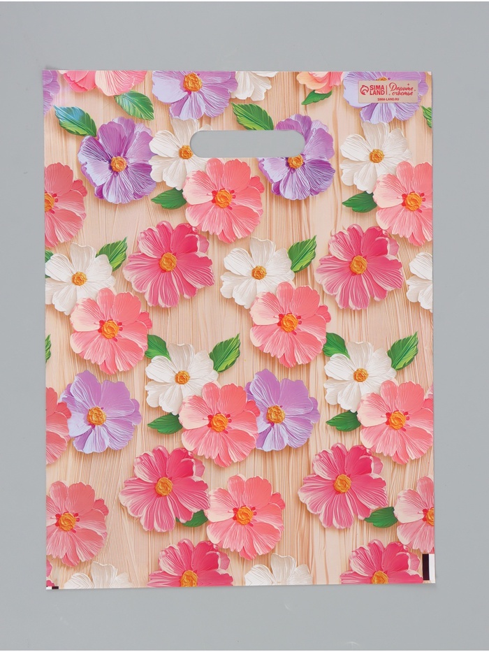 Подарочный пакет, полиэтиленовый, с вырубной ручкой, «Цветы», 30 х 40 см