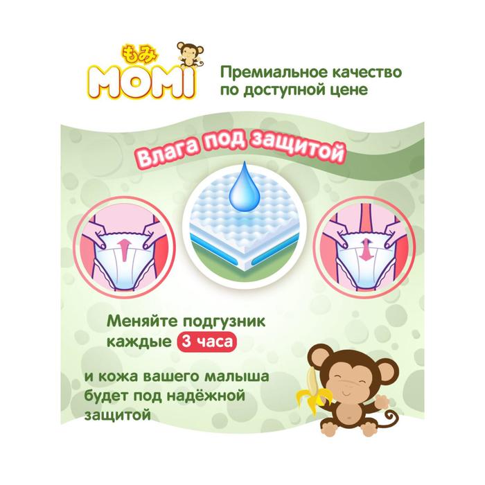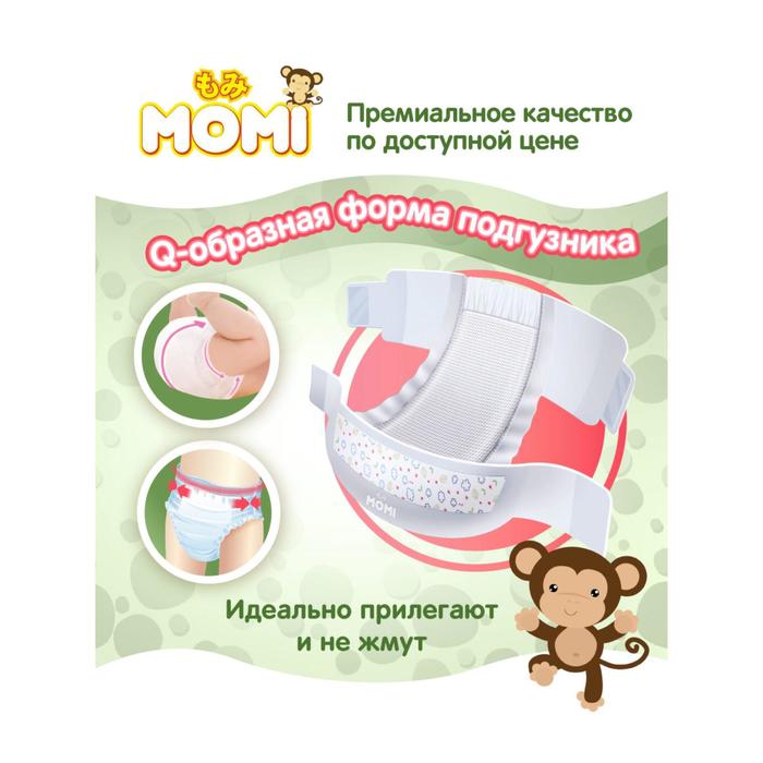 Подгузники-трусики MOMI — это уникальный продукт, сочетающий в себе японское качество, практичность и максимальный комфорт. Мягкие трусики анатомической формы плотно облегают ножки и животик, не сползают и не сковывают движений малыша. Три воздухопроницаемых слоя изготовлены из гипоаллергенных природных материалов, которые не раздражают кожу, сохраняя её сухой и бархатистой.