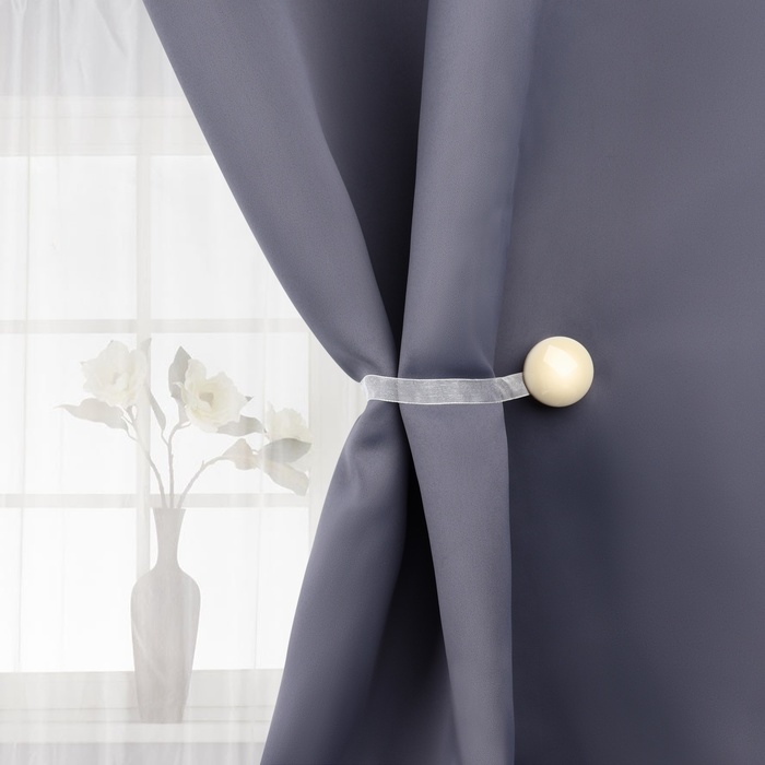 Молочные шторные держатели на ленте — элегантный способ придать шторам аккуратный вид. Круглые подхваты с глянцевой поверхностью мягко переливаются на свету, дополняя интерьер в нейтральных тонах. Бежевый оттенок гармонирует с классическими и современными стилями, не привлекая излишнего внимания.
