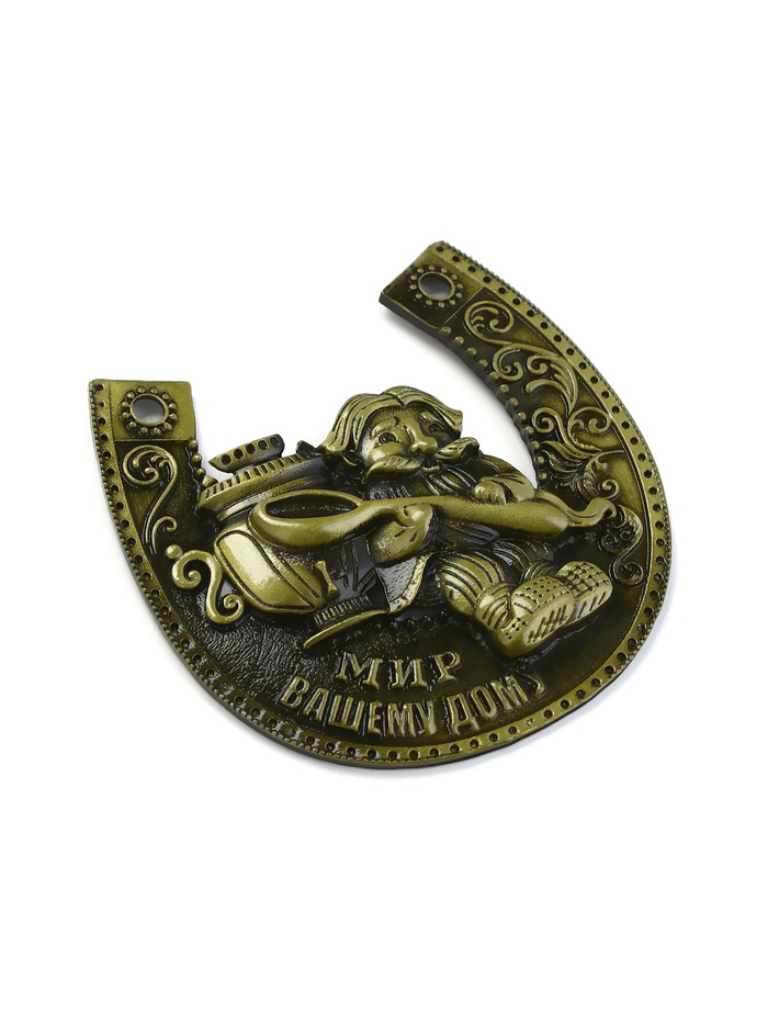 Подкова — один из самых древних и мощных талисманов, способных принести невероятное везение и успех. Оберег с ажурным тематическим узором изготовлен из металла. Подкова имеет сквозные отверстия, в которые можно продеть ленту и поместить на удобное Вам место в доме.