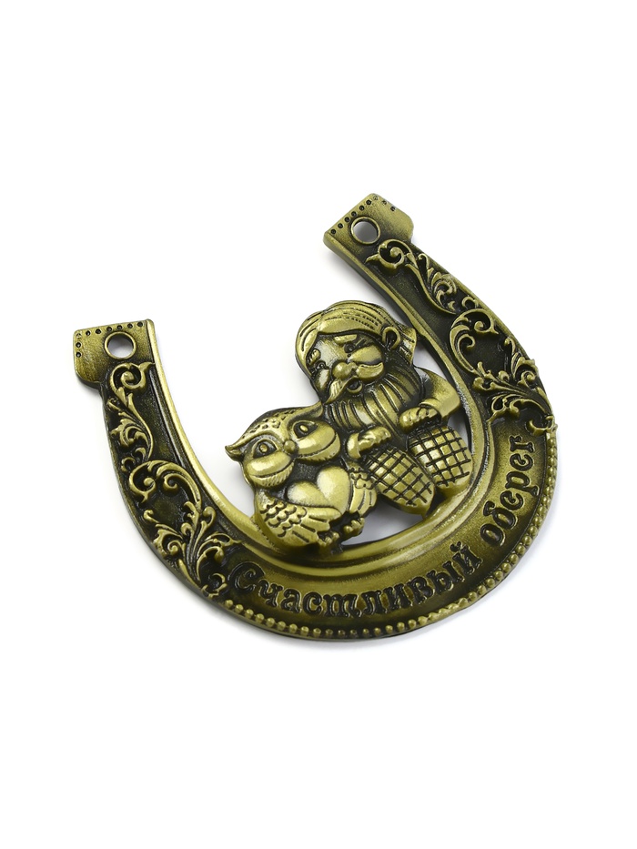 Подкова — один из самых древних и мощных талисманов, способных принести невероятное везение и успех. Оберег с ажурным тематическим узором изготовлен из металла. Подкова имеет сквозные отверстия, в которые можно продеть ленту и поместить на удобное Вам место в доме.