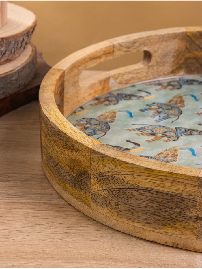 Поднос круглый с бортиками «Мудрый слон», 35×35×6.5 см, дерево манго