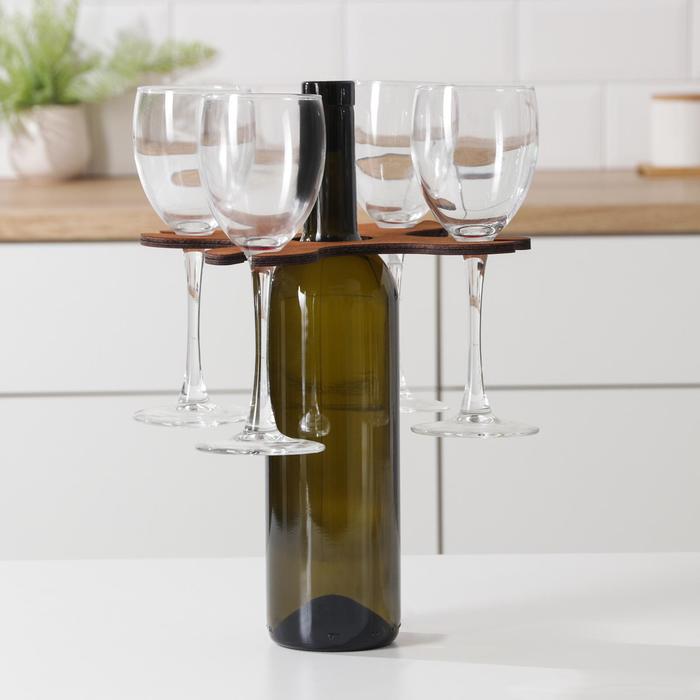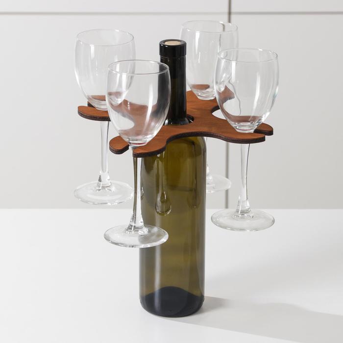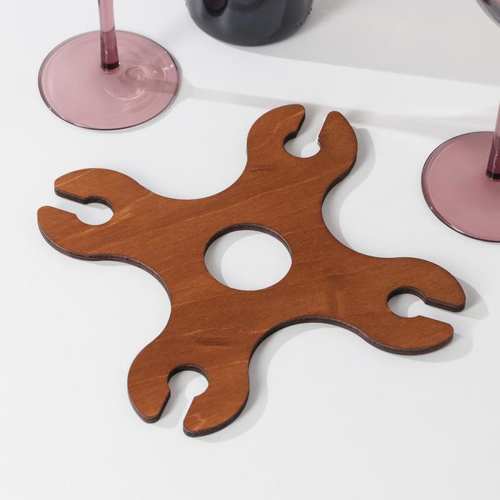 Подставка деревянная для вина и четырех бокалов Доляна, 18×18×2 см