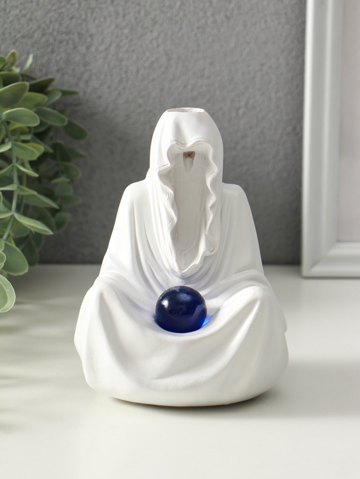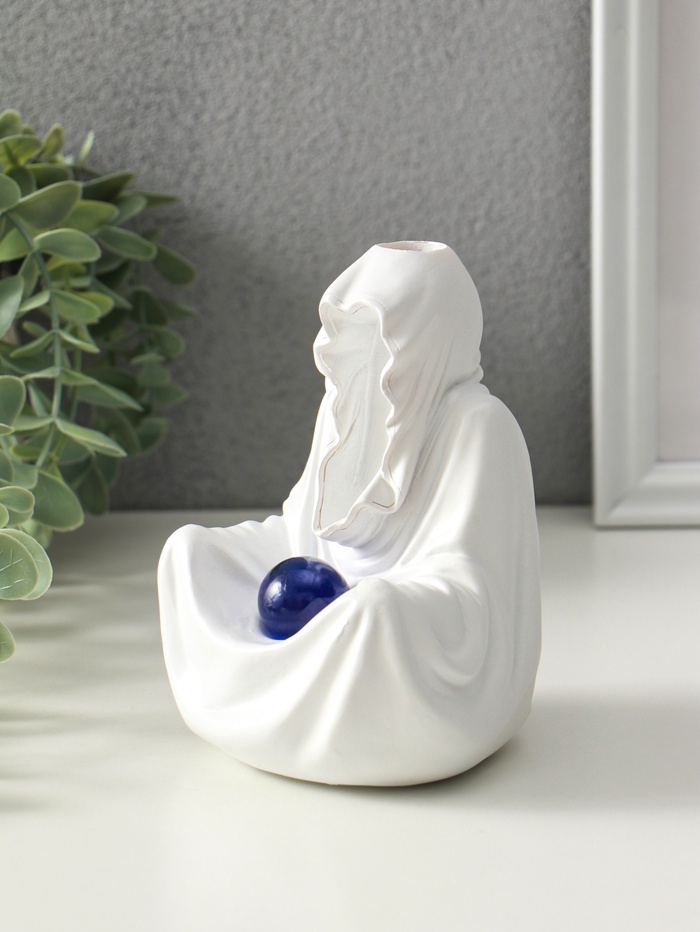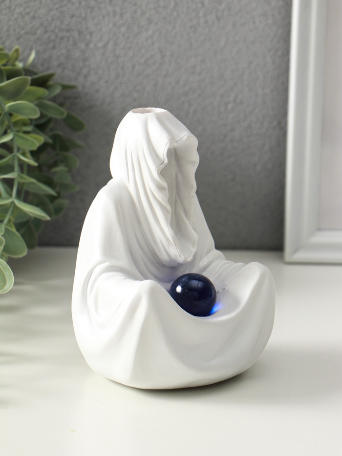 Этот аксессуар для ароматических конусов создаёт медитативную атмосферу. Полистоуновая фигура провидца мягко подсвечивается изнутри, направляя струйки дыма по своему силуэту. Мерцающий свет и плавное движение дыма превращают обычное воскурение в успокаивающий ритуал.