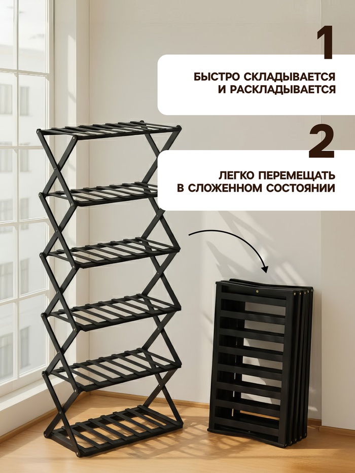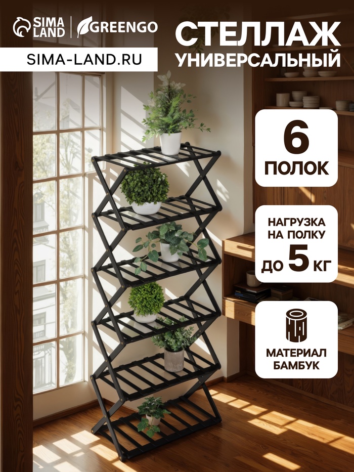 - Практичность и удобство. Шесть полок позволяют организовать пространство для цветов, книг или декора, сохраняя порядок и добавляя функциональности вашему дому.