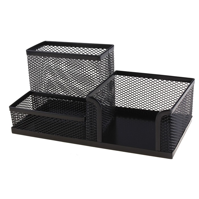 Изделия данной категории необходимы любому человеку, независимо от рода деятельности: широкий ассортимент товаров для учеников, студентов, работников офисов, архивов, руководителей, а также товары для творчества. Подставка для канцелярских мелочей с 3 отделами, в сетку, черная , как и другие представленные в нашем магазине канцелярские товары, организуют Ваше рабочее пространство и время. Востребованные предметы в удобной упаковке всегда под рукой в нужный момент. Вы всегда можете их приобрести в нашем магазине по низким ценам.