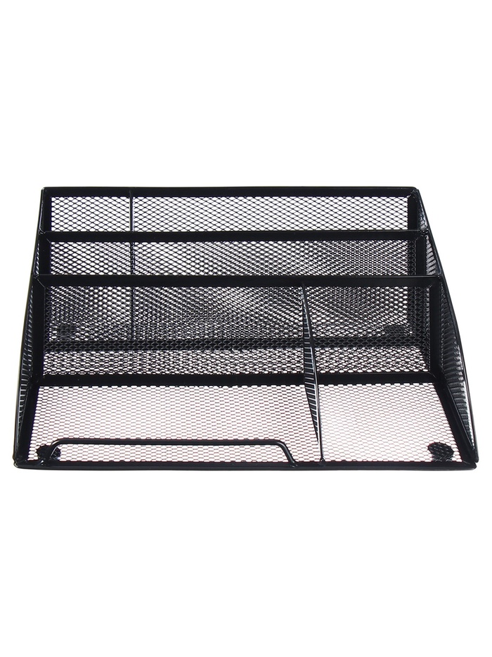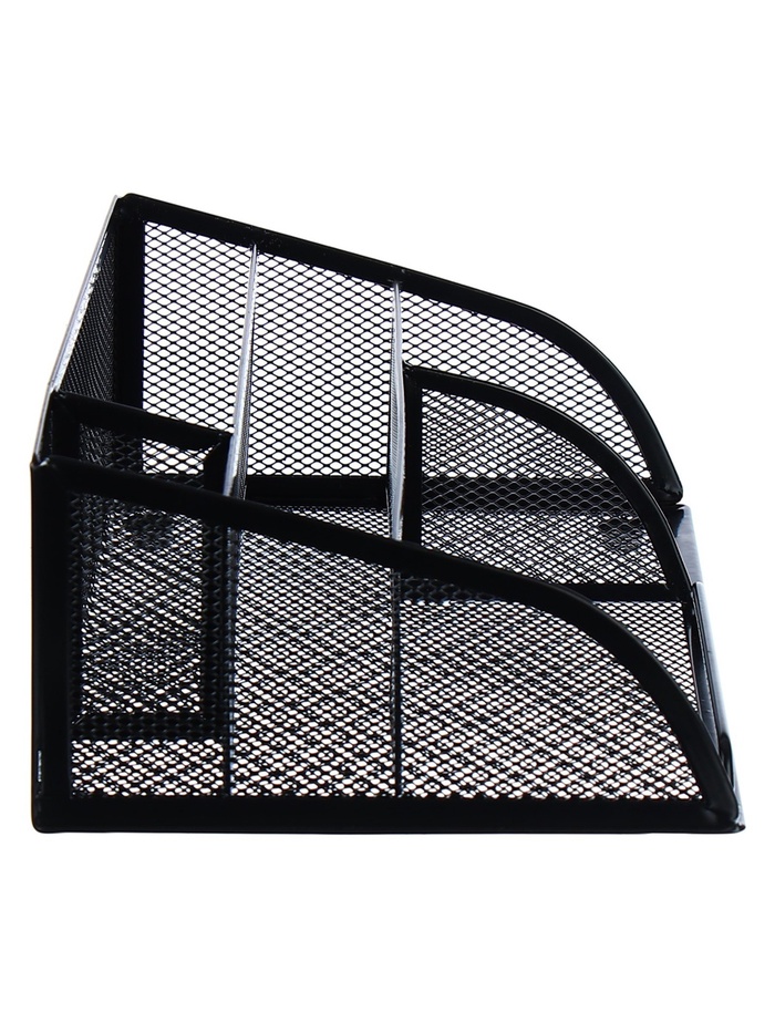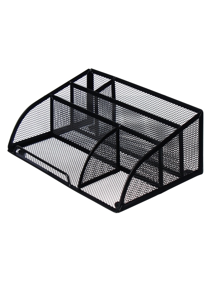 Чёрная металлическая подставка-органайзер станет вашим лучшим помощником на рабочем столе. Эффективно преобразуйте своё рабочее пространство, разместив канцелярские принадлежности в компактных и функциональных отделениях. Забудьте о хаосе в офисе и насладитесь простотой и порядком, который обеспечивает этот удобный стальной органайзер.