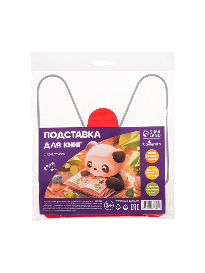 Подставка для книг Calligrata «ПРЕСТИЖ», с пластмассовым упором, европодвес, красная