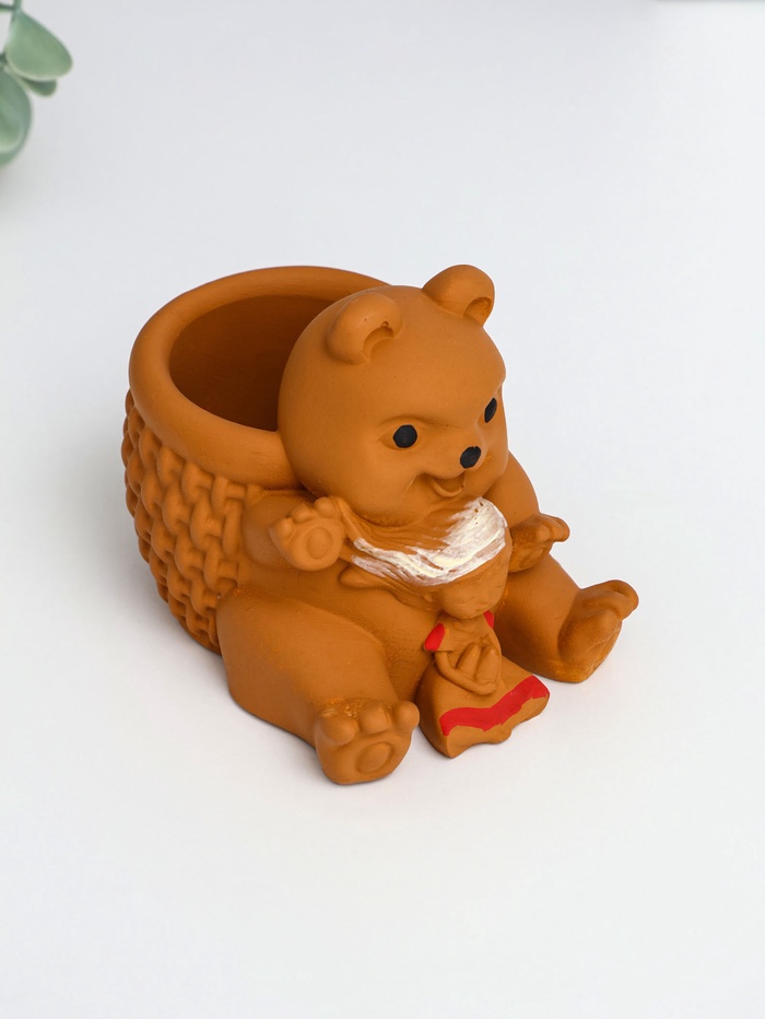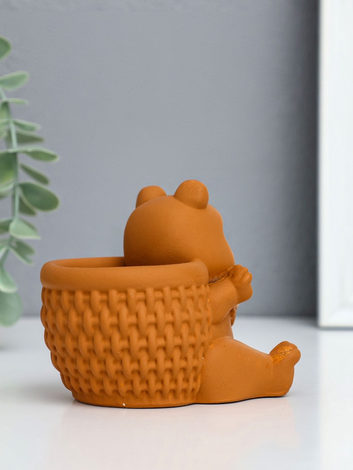 Подставка для мелочей "Медведь с корзинкой" 9х10х8 см, гипс, коричневый