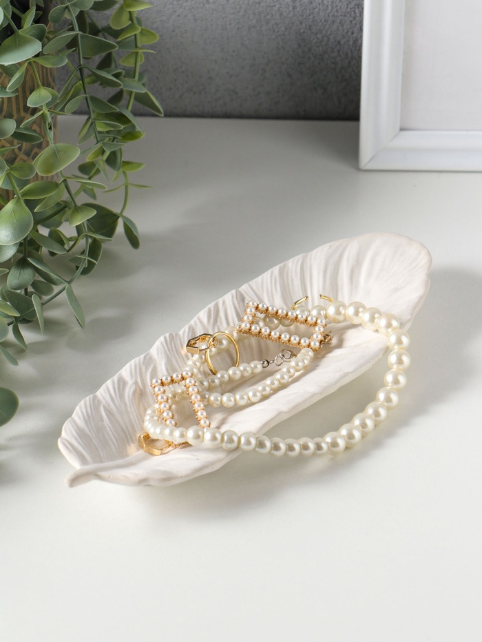 Подставка для мелочей «Перо», гипс под перламутр, 22×8×3 см
