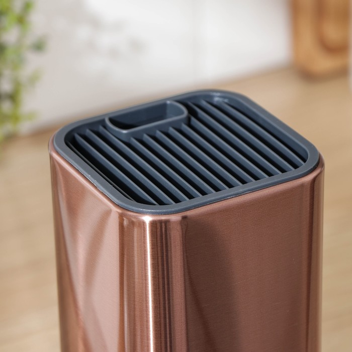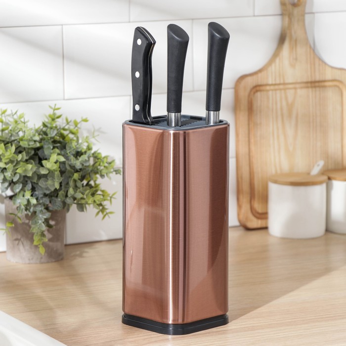 Подставка для ножей - универсальный аксессуар, идеально подходящий для стильной организации и демонстрации вашей коллекции ножей. Этот изящный и современный держатель для ножей изготовлен из высококачественной нержавеющей стали.
