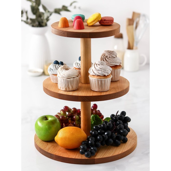 Подставка для пирожных и фруктов Adelica, d=32, d=26 см, d=20 см, высота 37 см, дерево массив берёзы, пропитано маслом