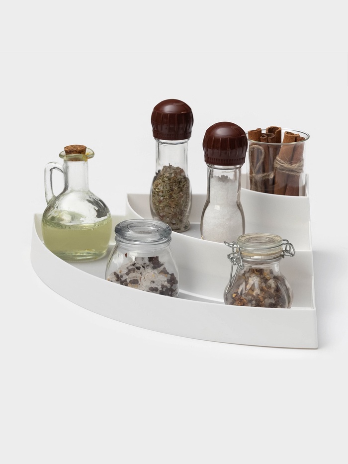 Универсальная трехступенчатая этажерка станет незаменима для размещения солонок, специй, баночек с приправами, соусов, масел. На полке можно хранить косметику, лаки, туалетную воду. Многофункциональный инвентарь может быть использован для хранения канцелярии, мелочей, витаминов, лекарств.