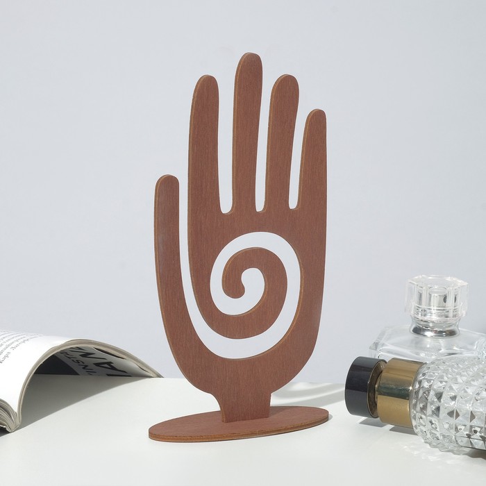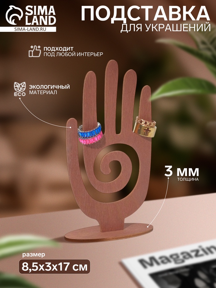 Настольная подставка для украшений в виде руки — это практичный и стильный аксессуар для хранения бижутерии. Размеры 8,5×3×17 см позволяют разместить серьги, кольца и цепочки в аккуратном порядке. Изготовленная из фанеры цвета полисандр, она сочетает прочность с элегантным внешним видом, создавая уютную атмосферу в спальне или гардеробной.