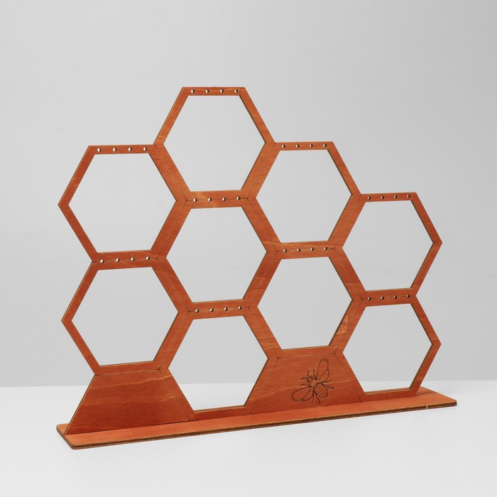 Если вы занимаетесь реализацией разнообразных украшений и аксессуаров, то вам нужно наглядно продемонстрировать свой товар, представив его в лучшем виде. Подставка для украшений «Соты», 28×5,5×23 см, фанера, цвет полисандр как нельзя лучше справится с этой задачей! У каждого украшения появится своё место, откуда его можно будет хорошо рассмотреть.