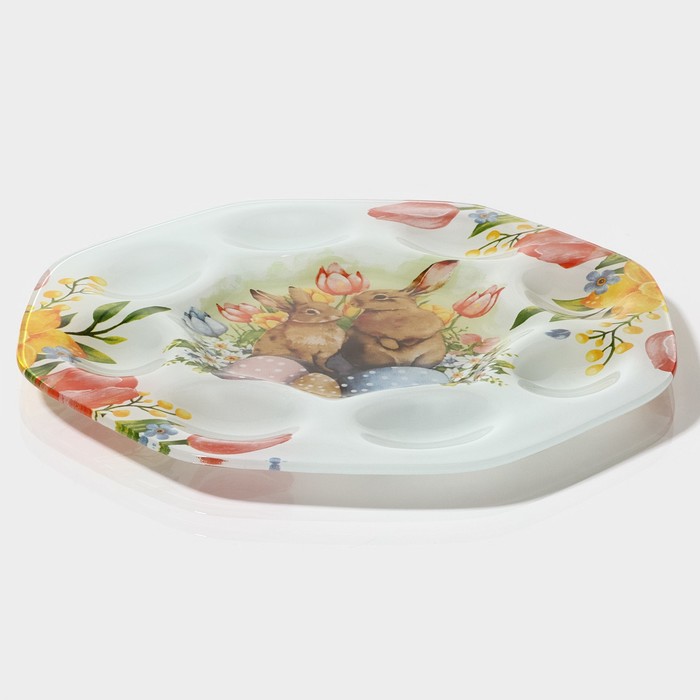 Подставка для яиц станет оригинальным решением для сервировки во время пасхальных торжеств и других пышных праздников. Посуда изготовлена из стекла и украшена тематическим рисунком. Классический дизайн изделия делает его гармоничным дополнением к любому варианту оформления стола.