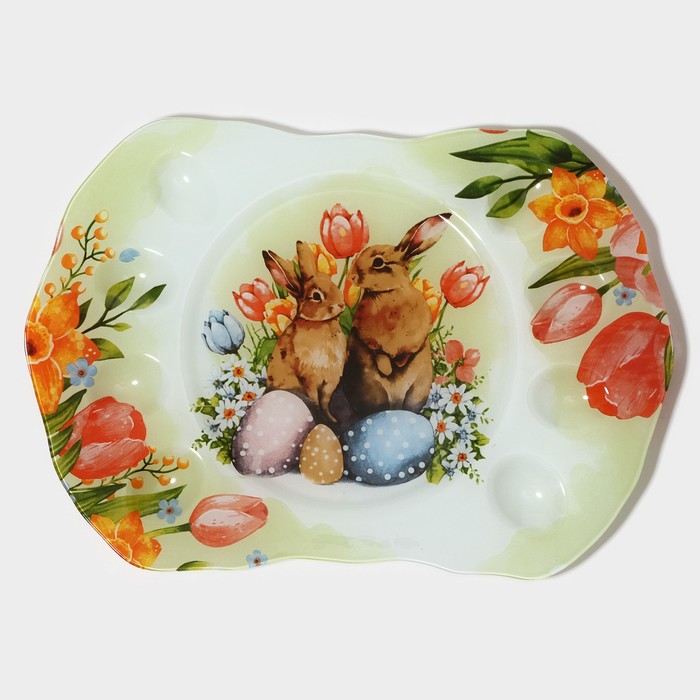 Подставка для яиц станет оригинальным решением для сервировки во время пасхальных торжеств и других пышных праздников. Посуда изготовлена из стекла и украшена тематическим рисунком. Классический дизайн изделия делает его гармоничным дополнением к любому варианту оформления стола.