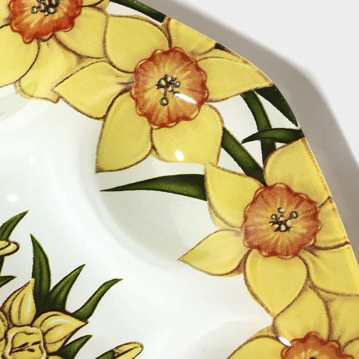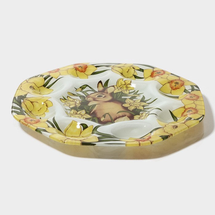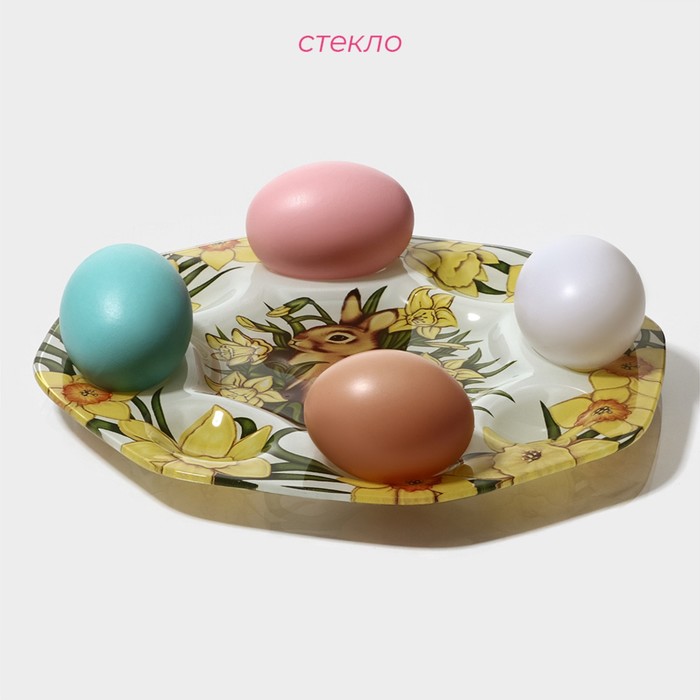 Подставка для яиц станет оригинальным решением для сервировки во время пасхальных торжеств и других пышных праздников. Посуда изготовлена из стекла и украшена тематическим рисунком. Классический дизайн изделия делает его гармоничным дополнением к любому варианту оформления стола.
