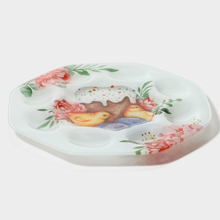 Подставка для яиц станет оригинальным решением для сервировки во время пасхальных торжеств и других пышных праздников. Посуда изготовлена из стекла и украшена тематическим рисунком. Классический дизайн изделия делает его гармоничным дополнением к любому варианту оформления стола.