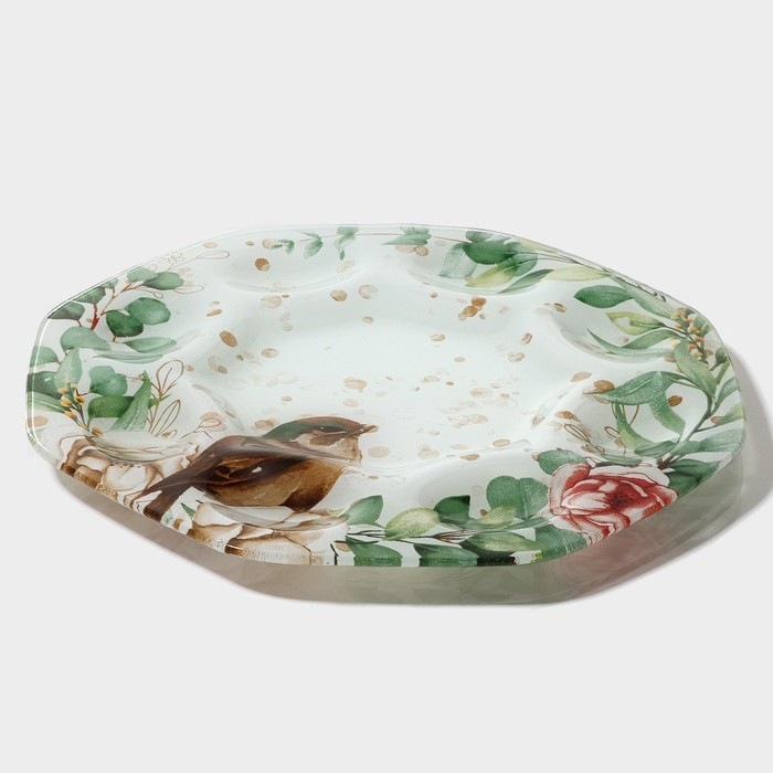 Подставка для яиц станет оригинальным решением для сервировки во время пасхальных торжеств и других пышных праздников. Посуда изготовлена из стекла и украшена тематическим рисунком. Классический дизайн изделия делает его гармоничным дополнением к любому варианту оформления стола.