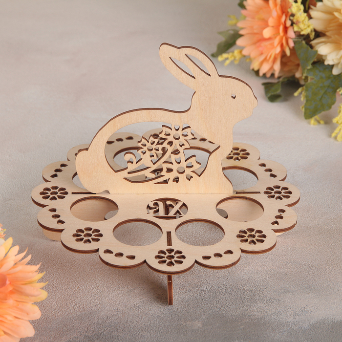 Подставка для яиц «Зайчик» используется для украшения праздничного стола во время Пасхи. Она помогает удобно разместить яйца и другие пасхальные декорации на столе, создавая привлекательную атмосферу и украшение.