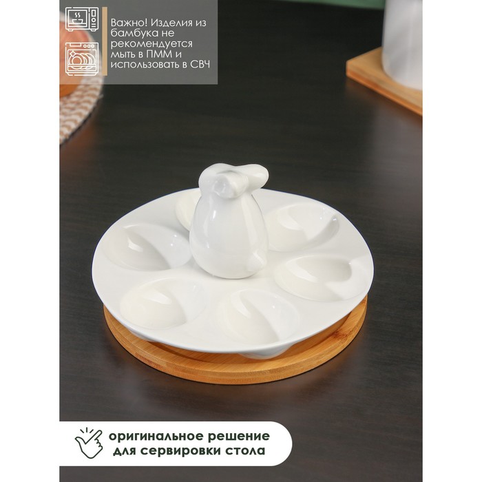 Подставка изготовлена из качественного фарфора, обладает прочностью, устойчива к перепадам температур. Изделие легко впишется в любой интерьер кухни, а также прекрасно подойдёт в качестве подарка.
